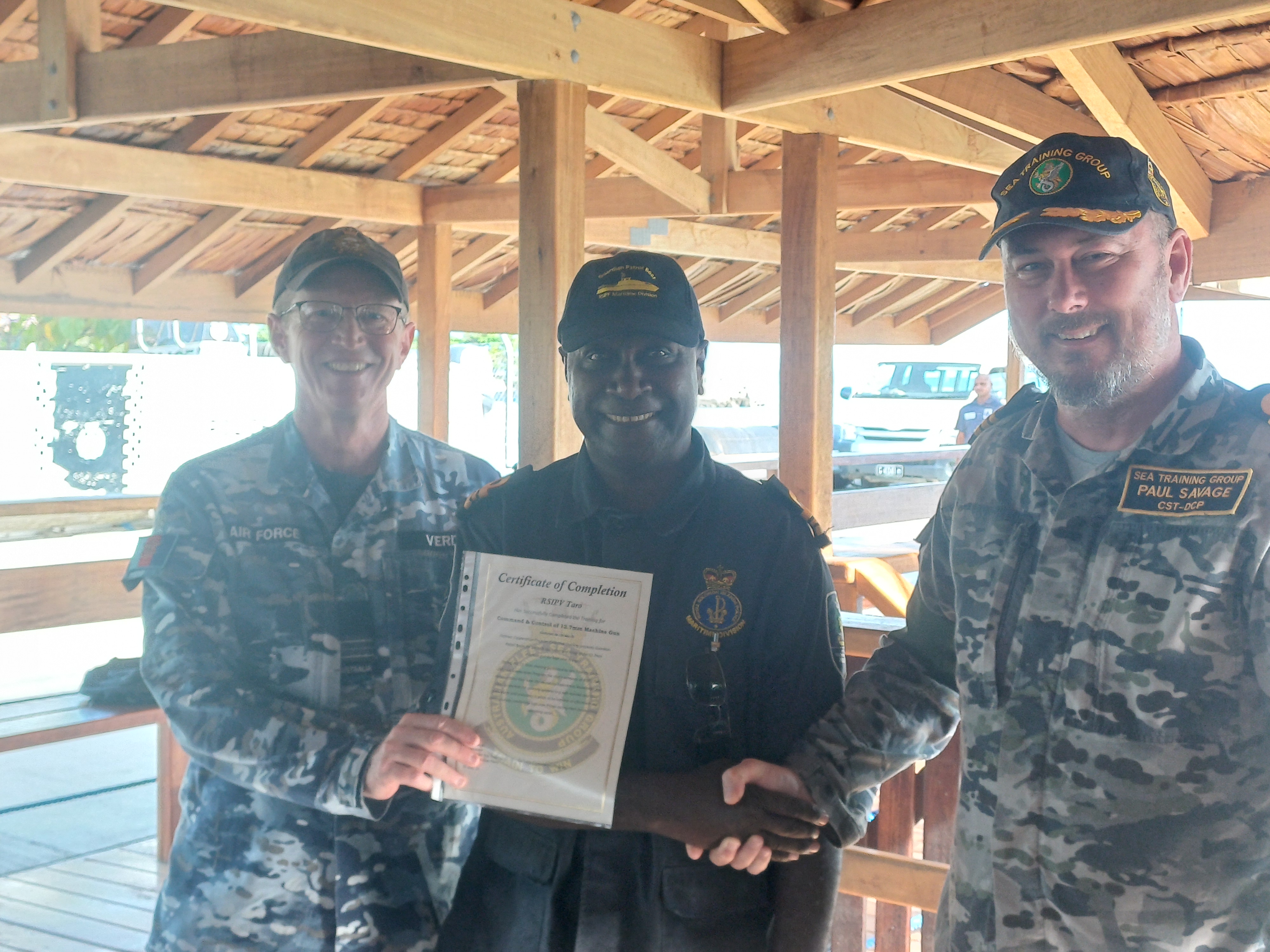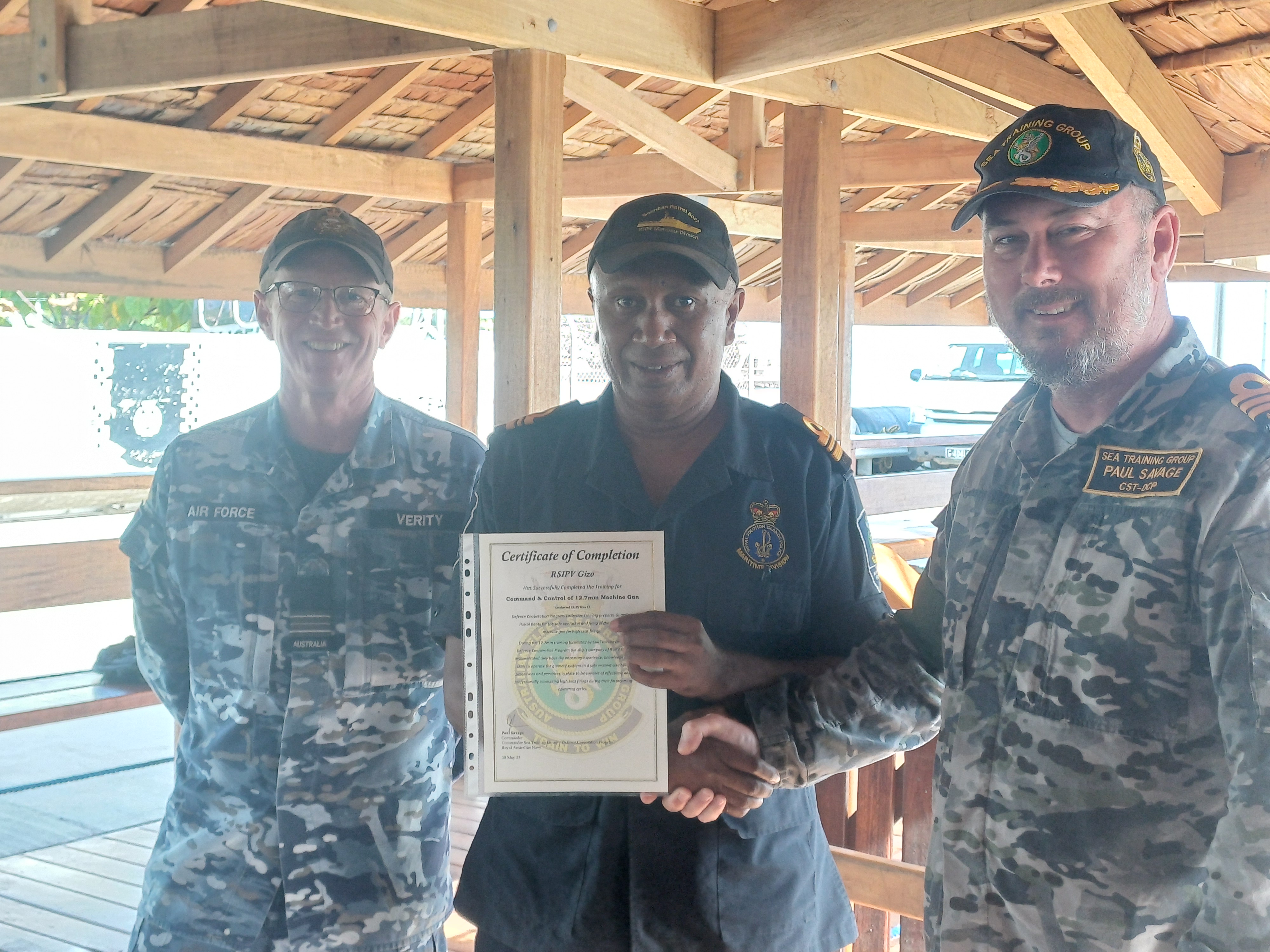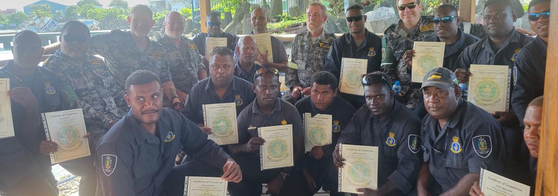 Commander Sea Training (STG-DCP), Commander Paul Savage, and the Assistant Defence Advisor to Solomon Islands, Squadron Leader Brett Verity, presented the certificates and commended the officers for their professionalism, dedication, and commitment to strengthening regional maritime security.