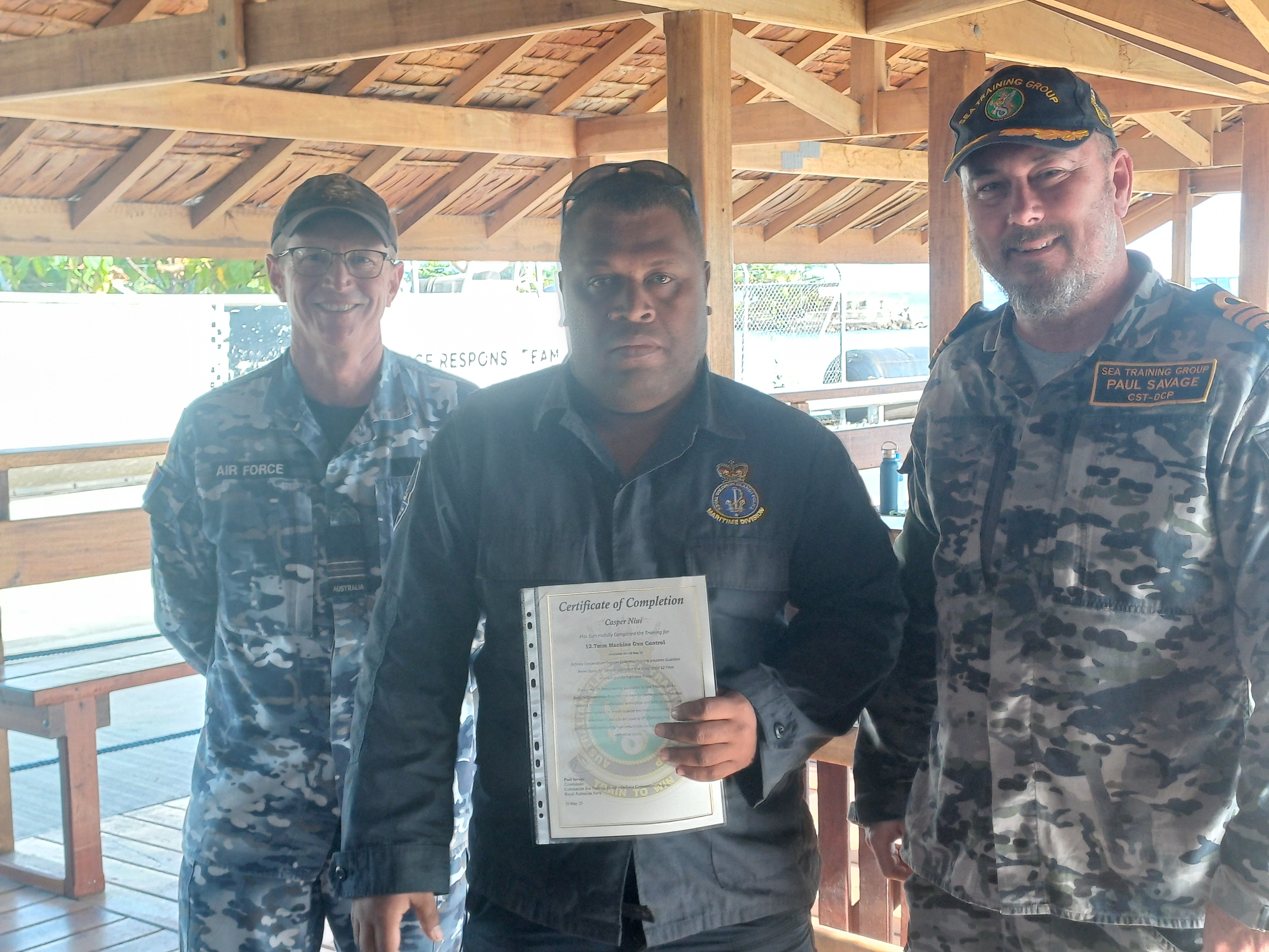 As part of the training, five senior officers, commanding officers, and executive officers from RSIPV Taro and RSIPV Gizo completed specialized command and control instruction. This component focused on the responsibilities of supervising and coordinating safe weapon operations during maritime security tasks.