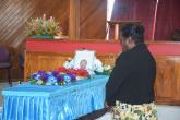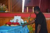 RSIPF Commissioner Mr. Mostyn Mangau pays his final respects to the late PC Maesilia during the send-out service at SSEC Central Church in Honiara.