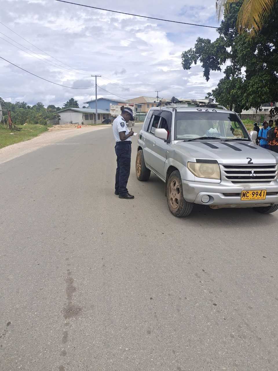 Officers from Noro and Seghe conducting a traffic check along the Noro main road area