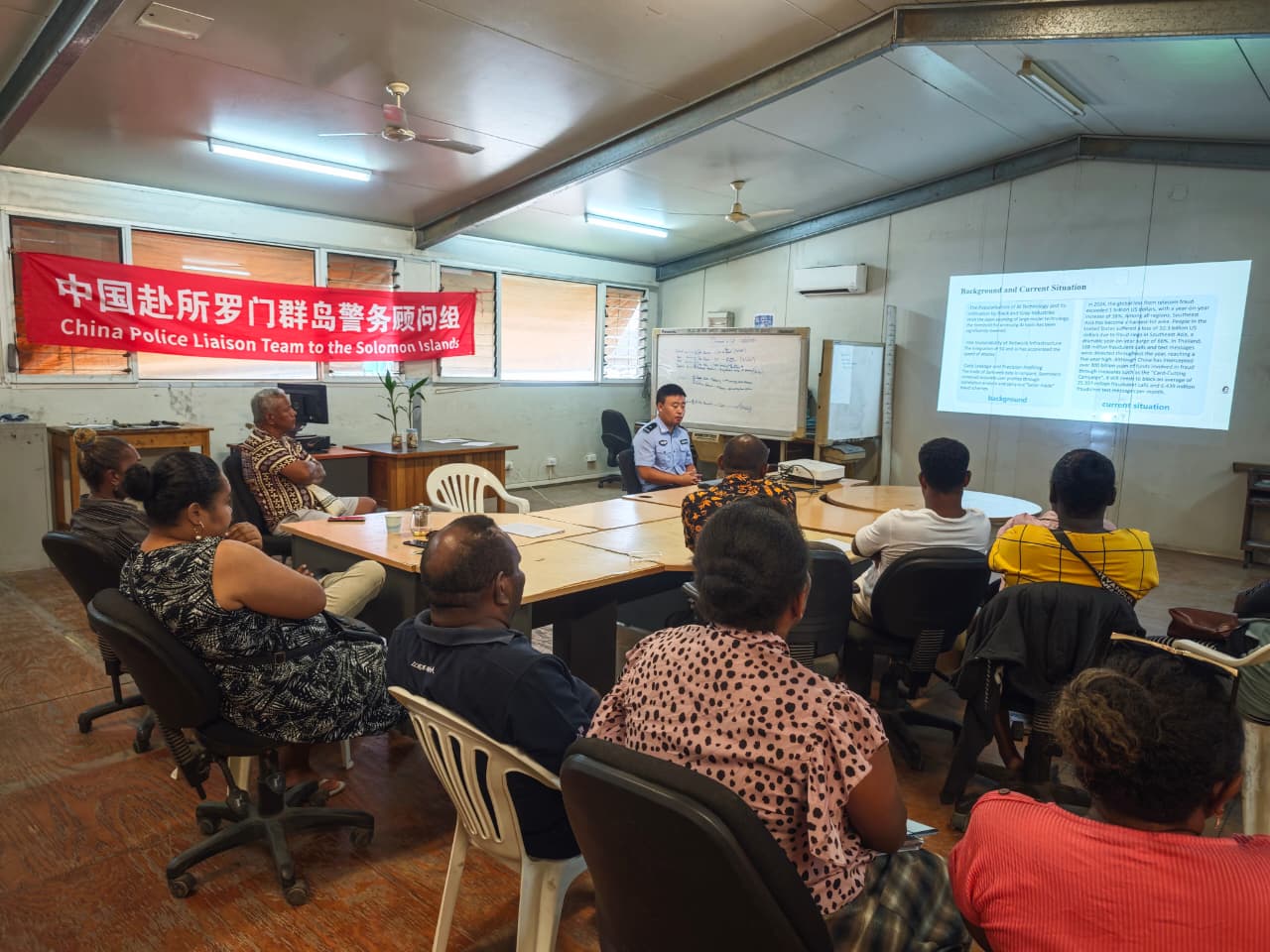 China Police Liaison Team (CPLT) recently conducted Artificial Intelligence (AI) anti-fraud training for more than 20 officers of the Royal Solomon Island Police Force (RSIPF) at the Central police station.