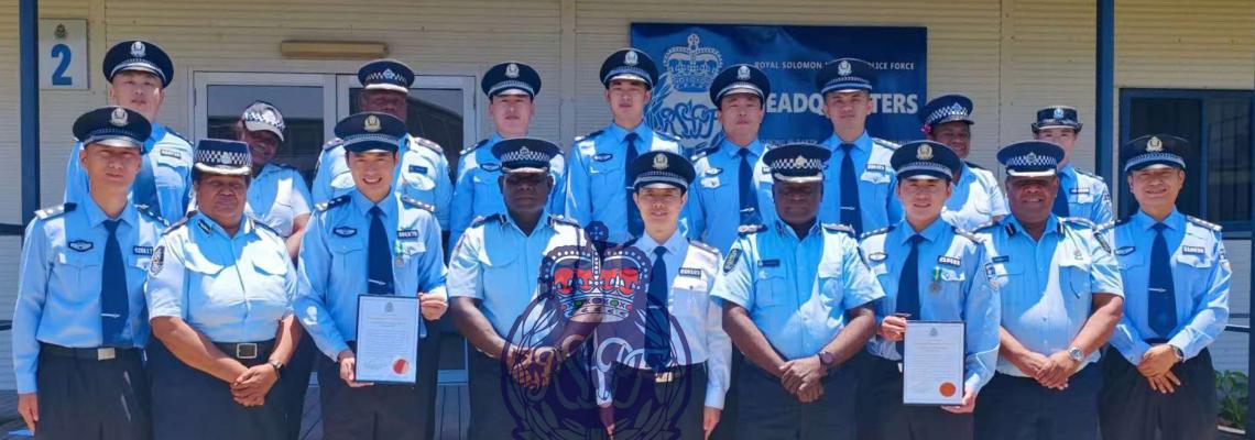 The Royal Solomon Islands Police Force (RSIPF) held a farewell ceremony at Rove police headquarters for two returning members of the CPLT (China Police Liaison Team) after successful completion of their mission to the Solomon Islands.