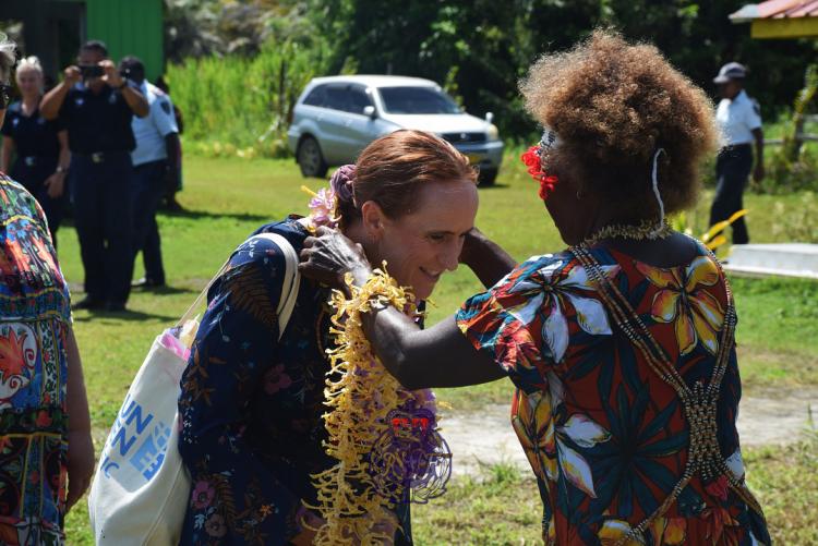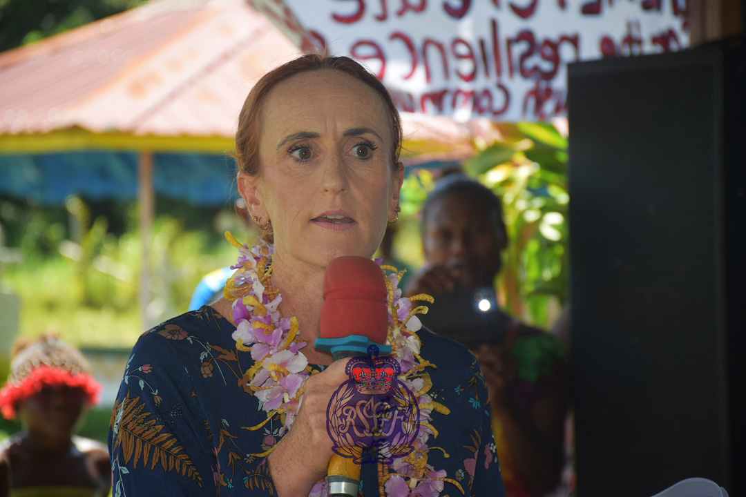 A woman leader from Kapinauovu welcomed the Deputy New Zealand High Commissioner to the Solomon Islands before the launching of the bylaw.