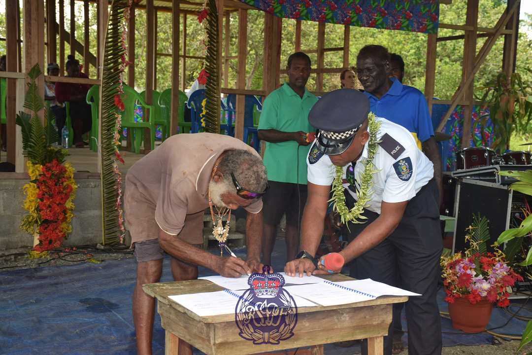 The RSIPF Officer, Senior Police Constable (PC) Joel Saumanu from the National Crime Prevention Department (NCPD), formally declared the community bylaw, which was witnessed by the two communities, Tenatui and Kapinaovu.