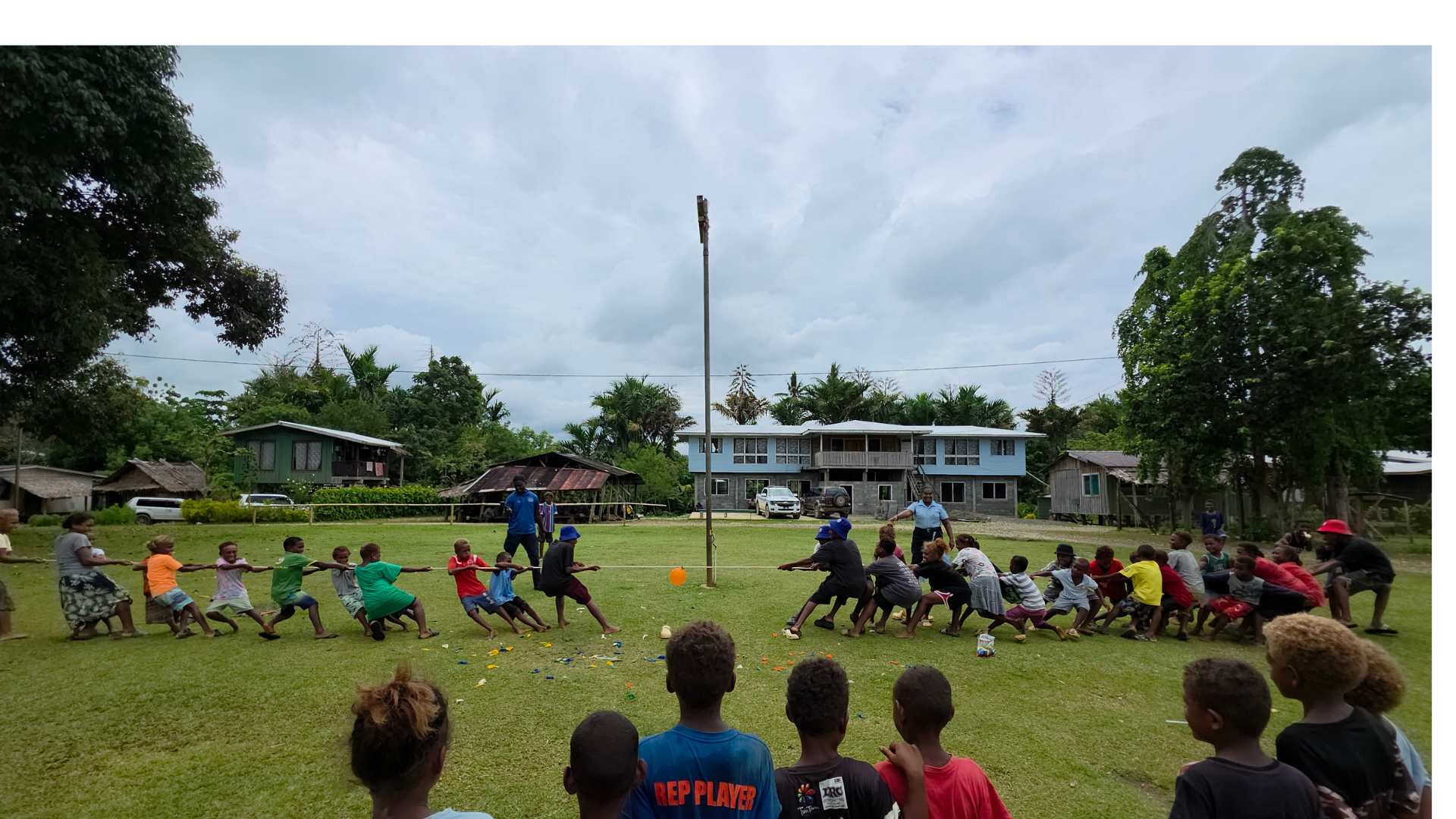 Kilusakwalo Children participating in the ‘Tug of War’ challenge during the games as RAPPP HWCE Team member and Auki RSIPF Officer looks on.
