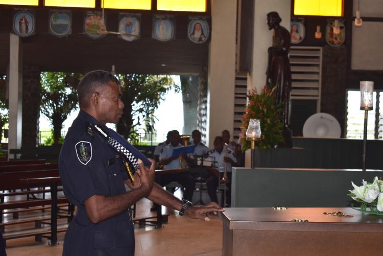 Officers of the Royal Solomon Islands Police Force (RSIPF) in Honiara today (16 November 2021) farewelled their colleague officer the late Police Inspector Silas Sario Tuaviri during a funeral service at the Holy Cross Cathedral after he passed away on 12 November 2021.