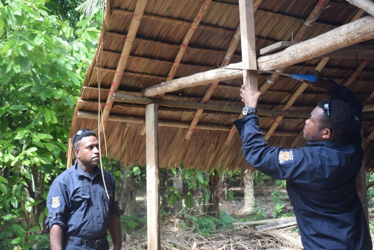 Officers of the Royal Papua New Guinea Constabulary (RPNGC) are helping the KG VII community to build their church.