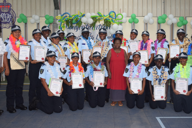 Female new recruits pose for a photo with Ms. Ruth Liloqula (center) during the graduation ceremony