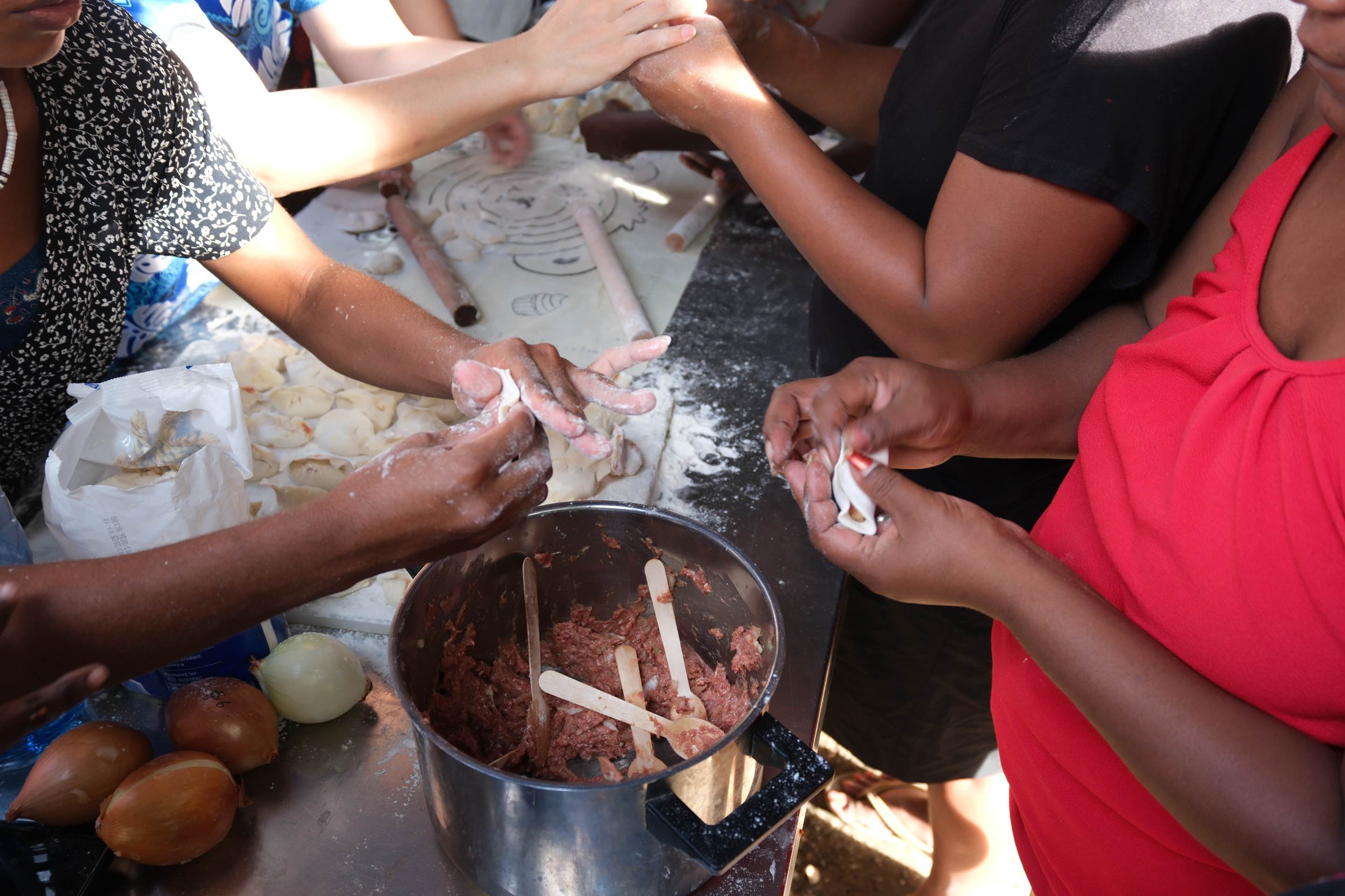 The women in the community showed a strong interest in learning as they paid attention during the whole session until they got their chance to start making dumplings.