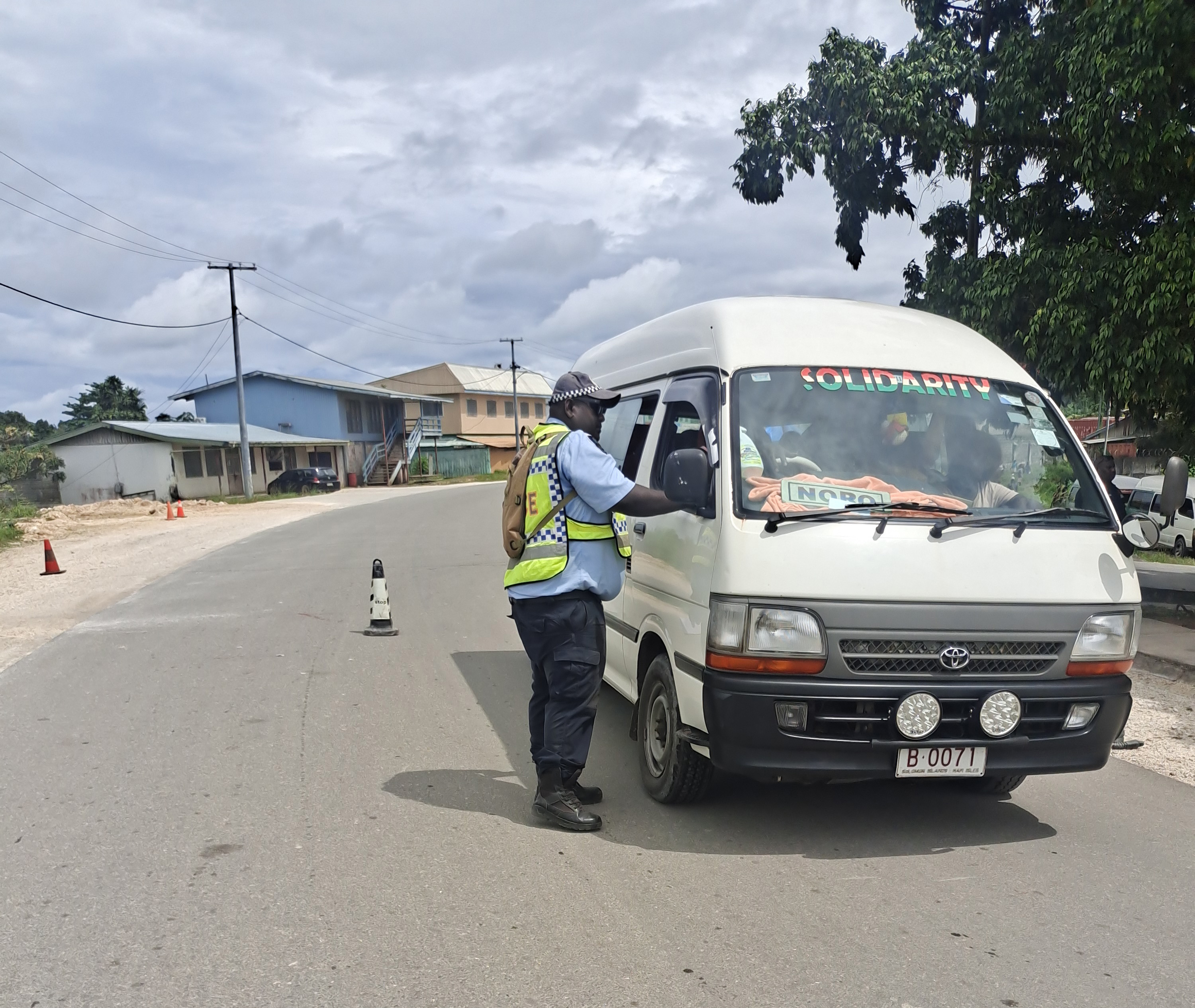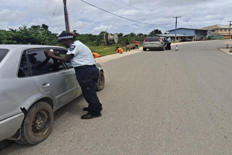 Officers from Noro and Seghe conducting a traffic check along the Noro main road area