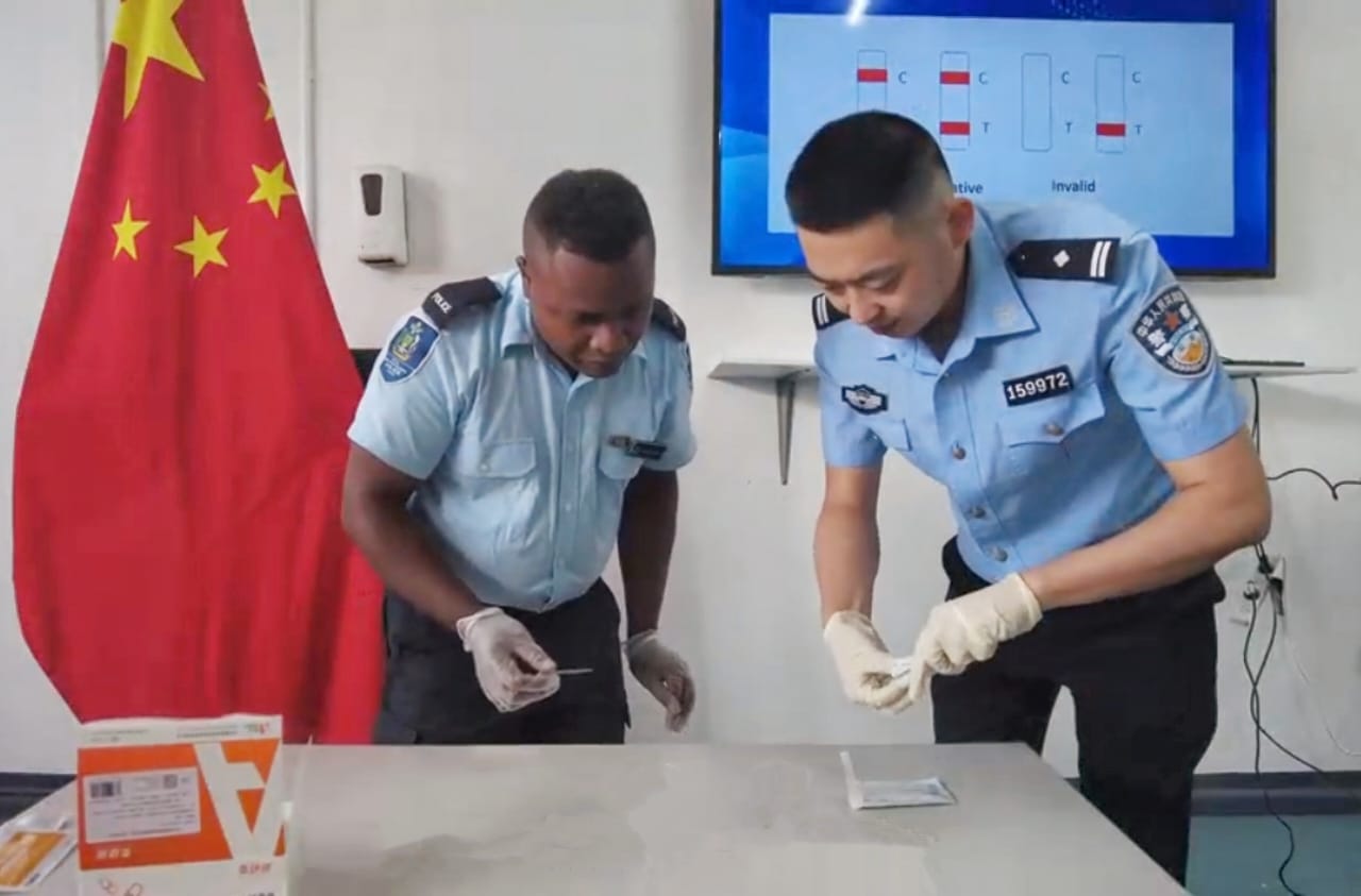Following the ceremony, the CPLT donated 450 sets of drug testing kits, capable of detecting five categories of drugs, including cannabis and morphine. As part of the practical cooperation, CPLT anti-drug expert, Superintendent Zhang Guangyao conducted hands-on training for a total of 14 investigators from different police stations in Honiara.