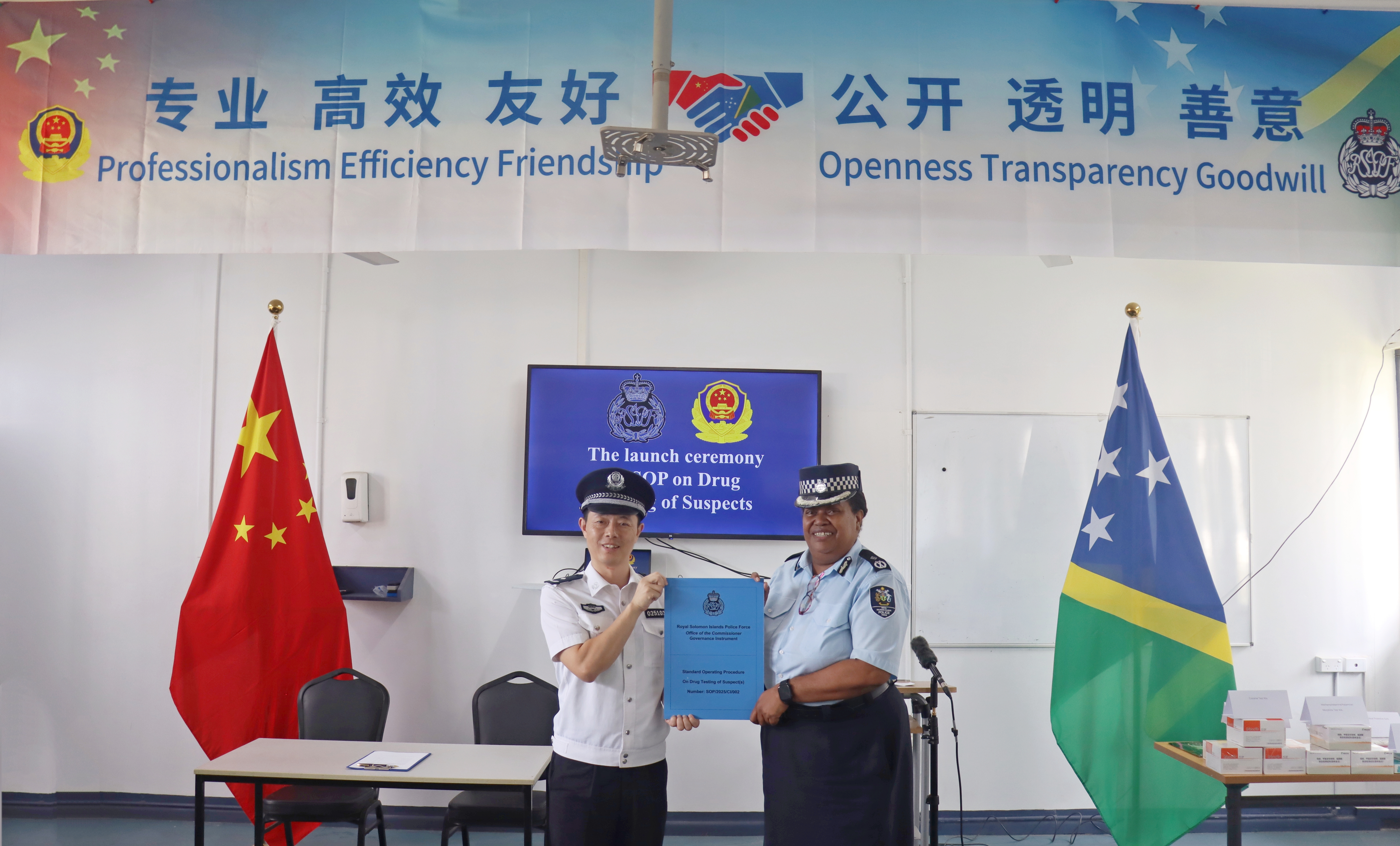 Director of the National Criminal Investigation Department (NCID), Chief Superintendent John Foru, emphasized the importance of the initiative, which gives us greater confidence in our fight against drug crime. Deepening SI–China policing cooperation will bring stronger momentum to safeguarding the peace and security of the Solomon Islands.