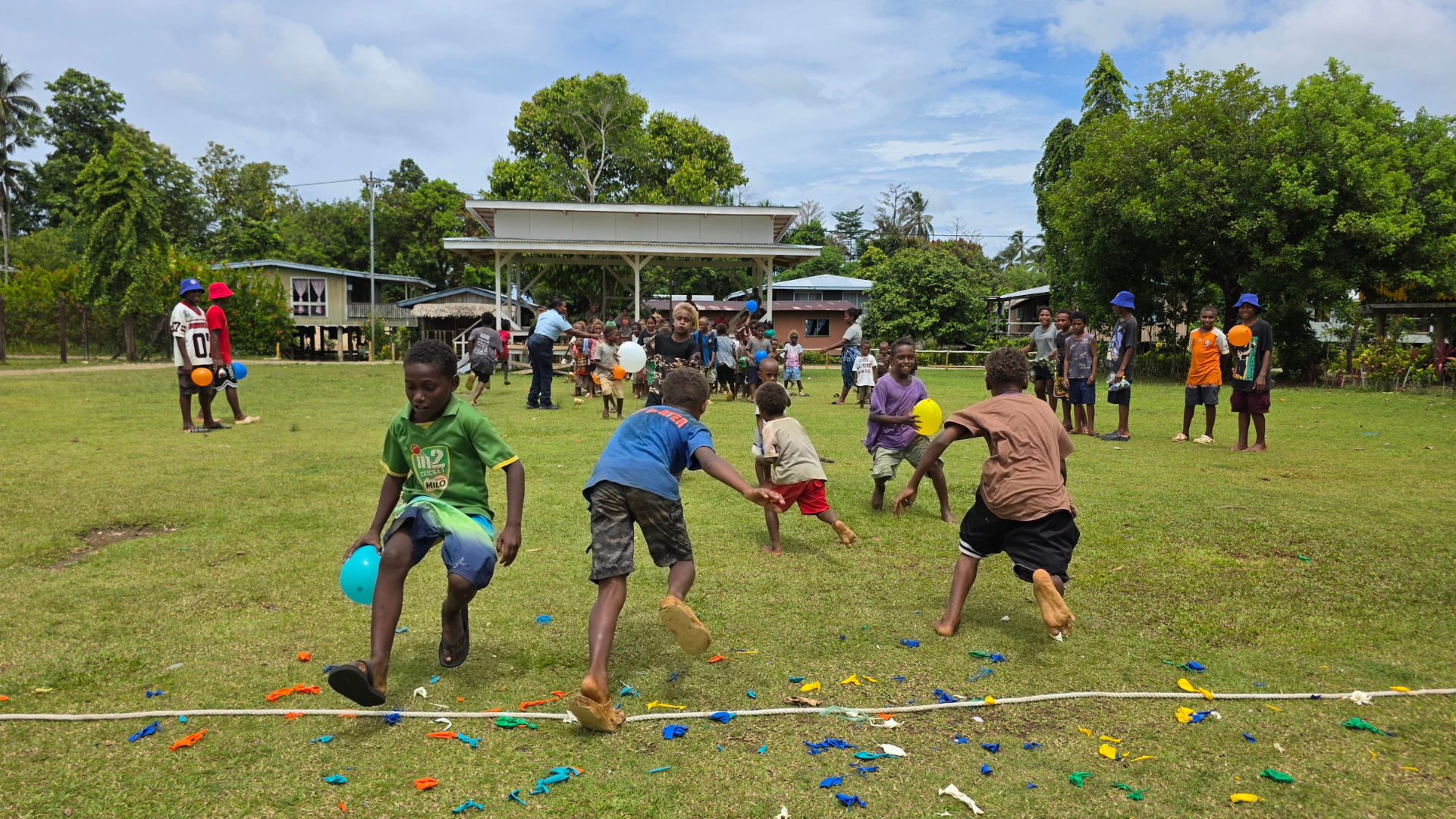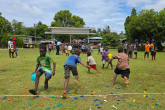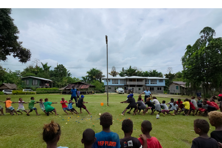 Kilusakwalo Children participating in the ‘Tug of War’ challenge during the games as RAPPP HWCE Team member and Auki RSIPF Officer looks on.
